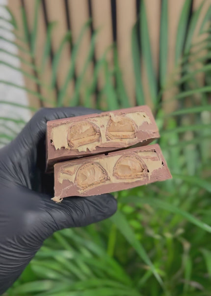 The Kinderella Bar is a thick and chunky delight featuring our signature milk chocolate layered with a creamy white chocolate hazelnut creme and a crispy chocolate hazelnut wafer filling.