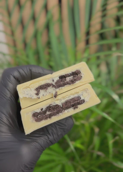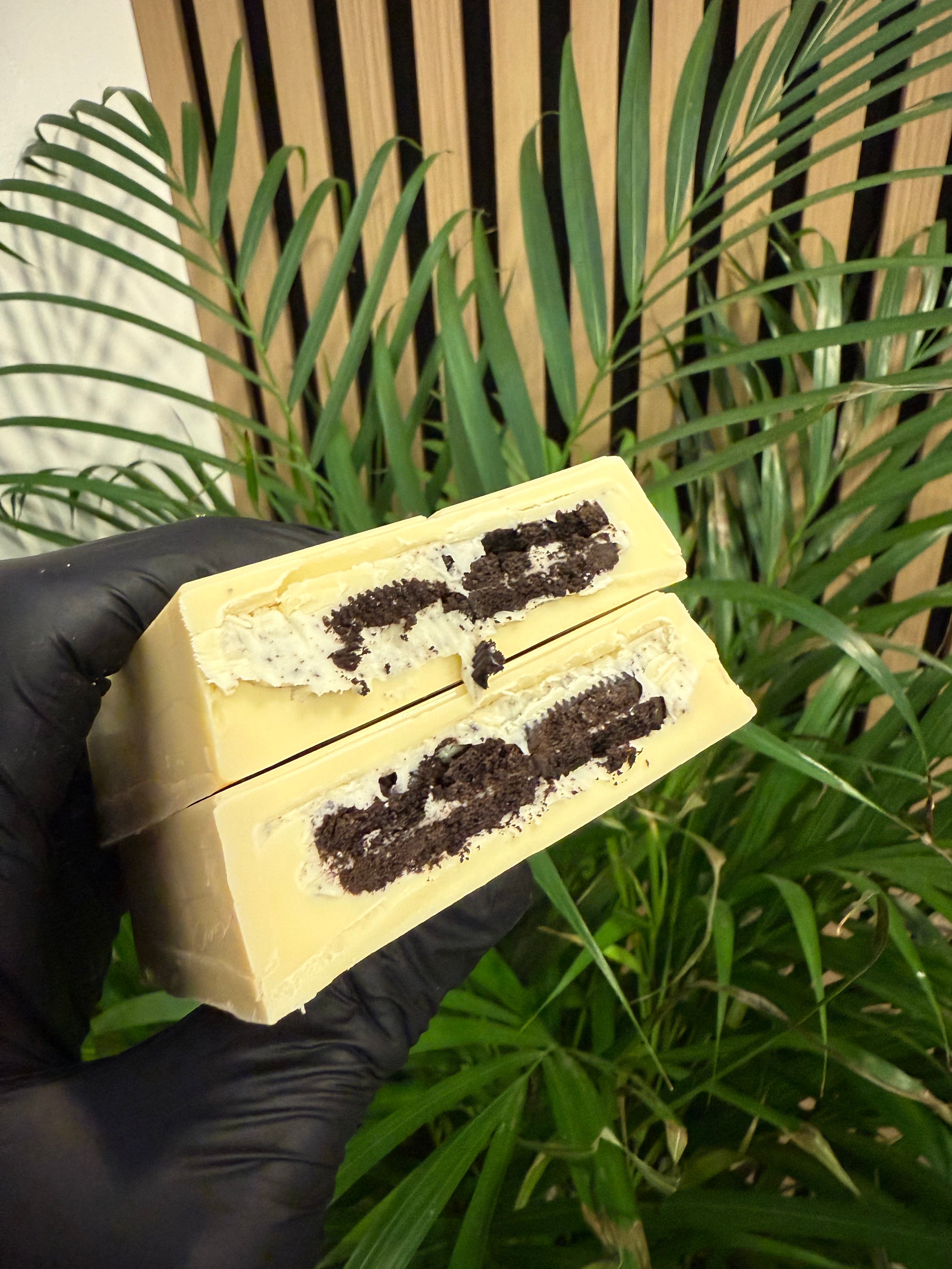 The Cookies & Cream Bar brings everyone’s favorite cookie to life, surrounded by crunchy cookie and cream sauce, all wrapped in our velvety smooth signature white chocolate.
