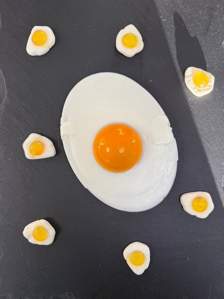 This cheeky creation flips breakfast on its head with our signature milk chocolate "white" topped with creamy vanilla flavouring, all cradling a luscious caramel-filled "yolk" at its centre.