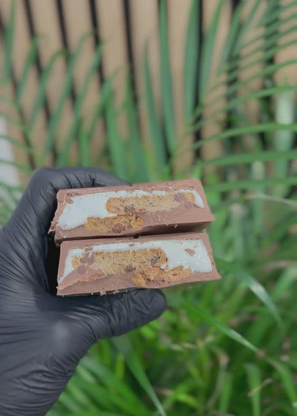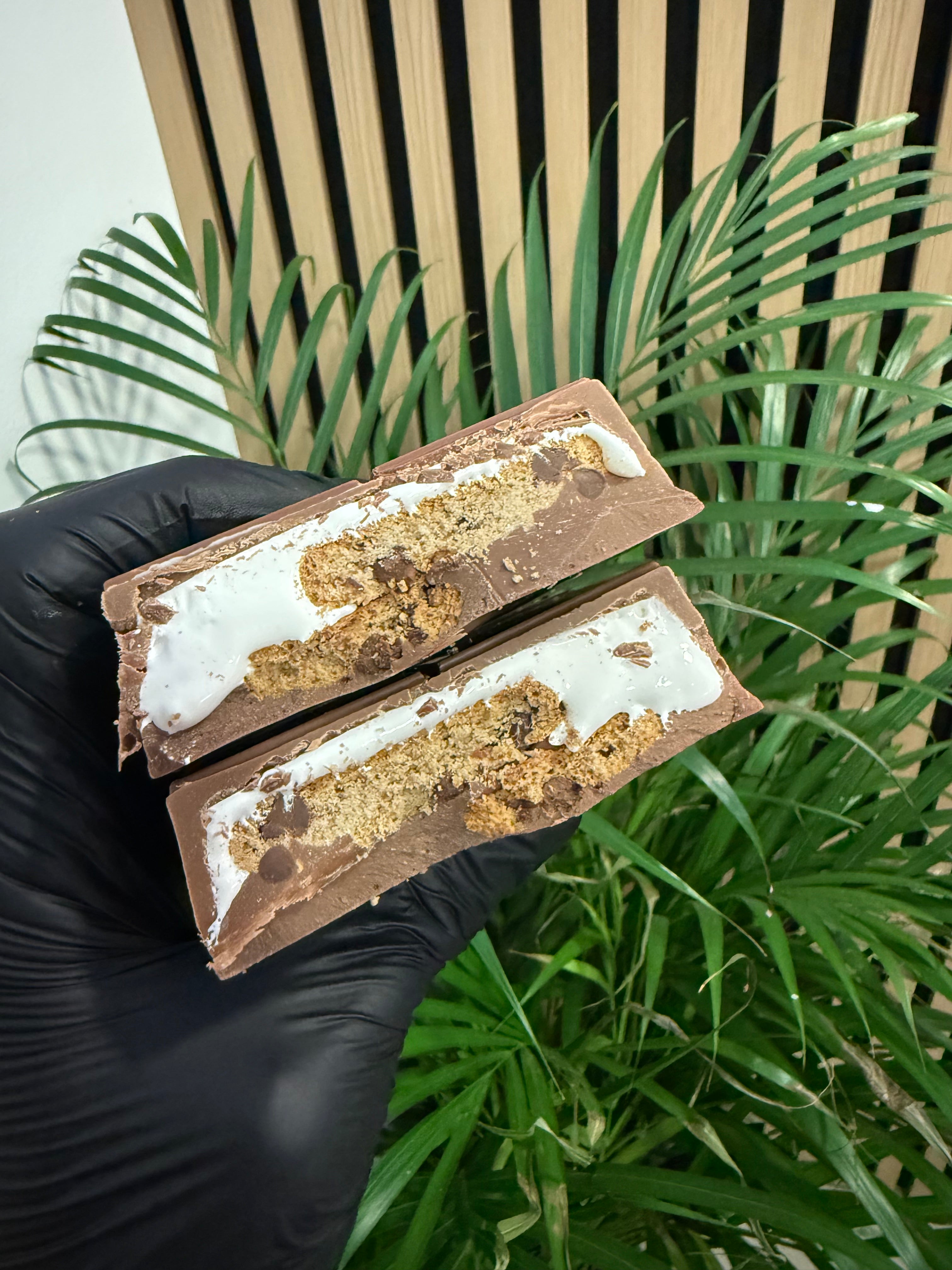 Inside a smooth milk chocolate shell, The S'mores Bar hides a gooey mallow and crunchy chocolate chip cookie centre.