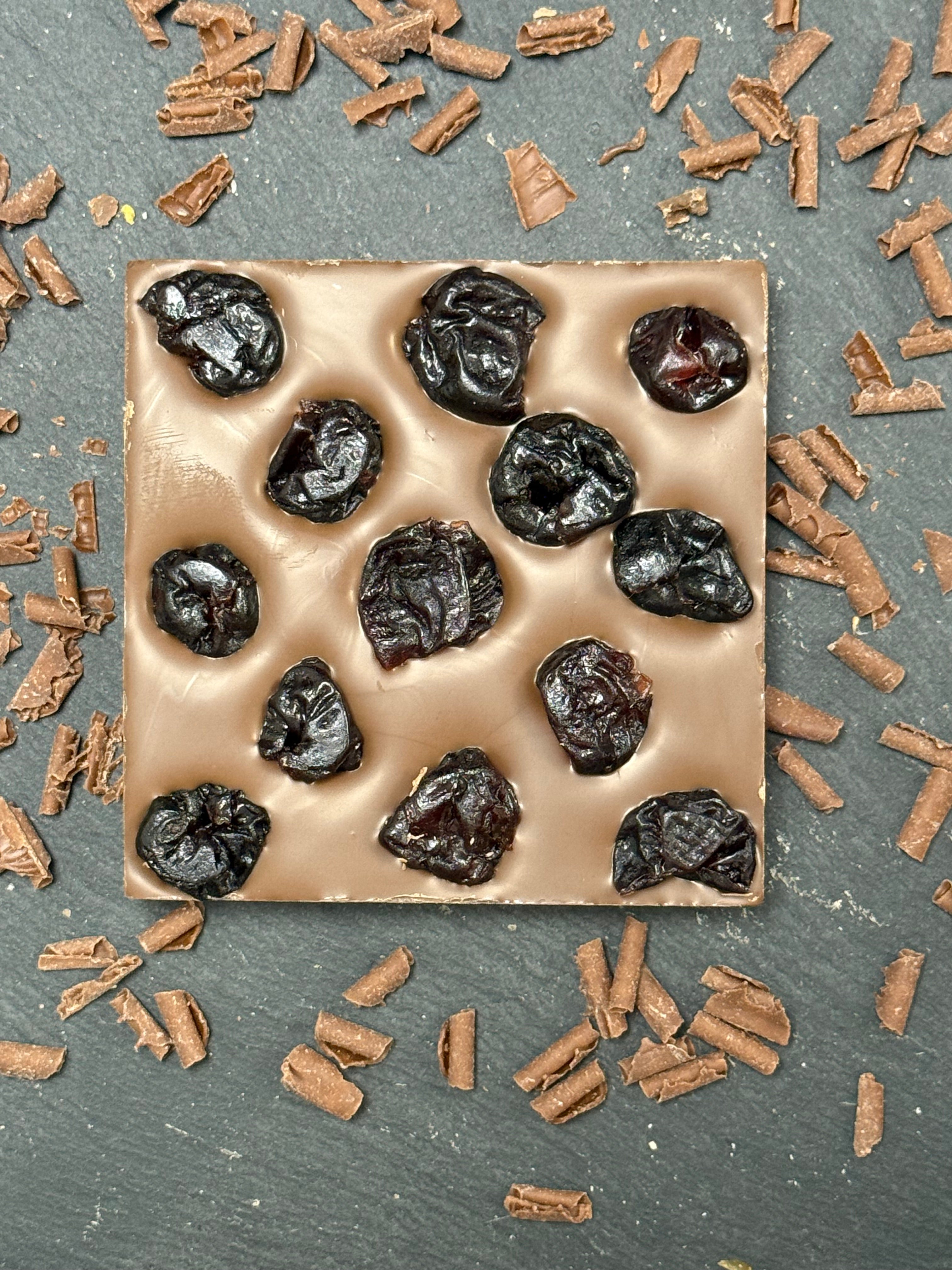 Tart, juicy Chilean cherries bring a burst of fruity freshness to our signature milk chocolate in this delightful mini bloc. The natural tartness of the cherries cuts through the sweetness beautifully, creating a perfectly balanced flavour experience. At 96g, this treat is ideal for fruit and chocolate lovers seeking something a little different. Vibrant, refreshing, and utterly cravaeble.