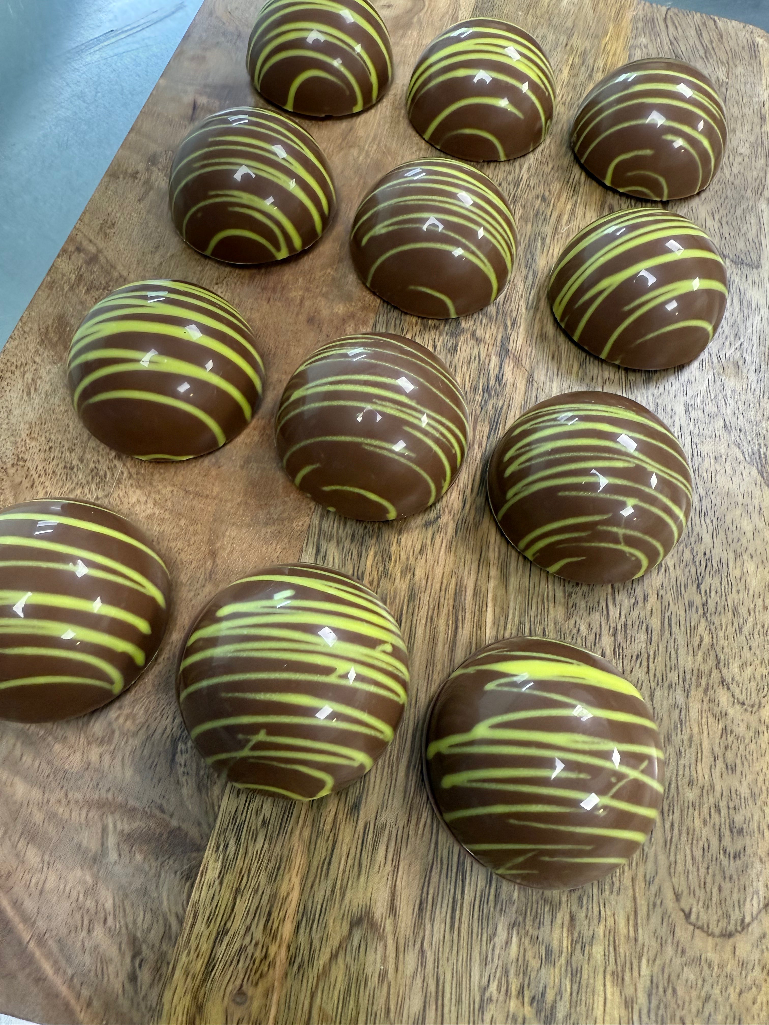 2-3 bites of pure indulgence per dome, these handmade treats offer the perfect balance of rich chocolate and smooth, zesty goodness. Treat yourself to a moment of joy with every single one.