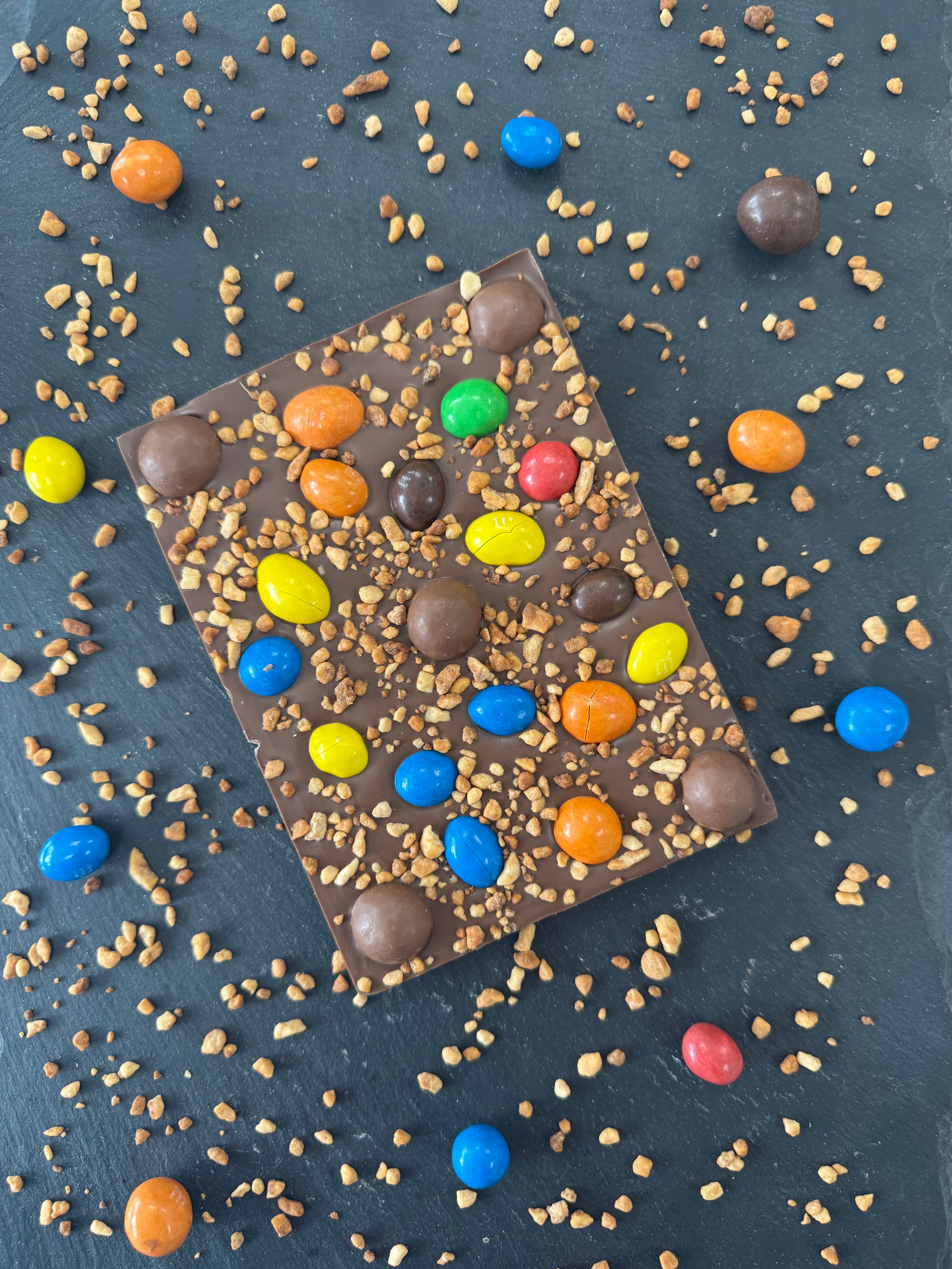 Get ready for a nutty adventure with our Peanut Crunch Bloc. Creamy milk chocolate meets its match with caramelised peanut nibs, peanut and chocolate candy-coated treats, and crunchy malt-flavoured balls that deliver serious texture thrills. It's a celebration of crunch, a love letter to peanuts, and proof that chocolate gets even better when things get a little bit wild. Bold, satisfying, and utterly addictive—this is chocolate for those who like their treats with personality.